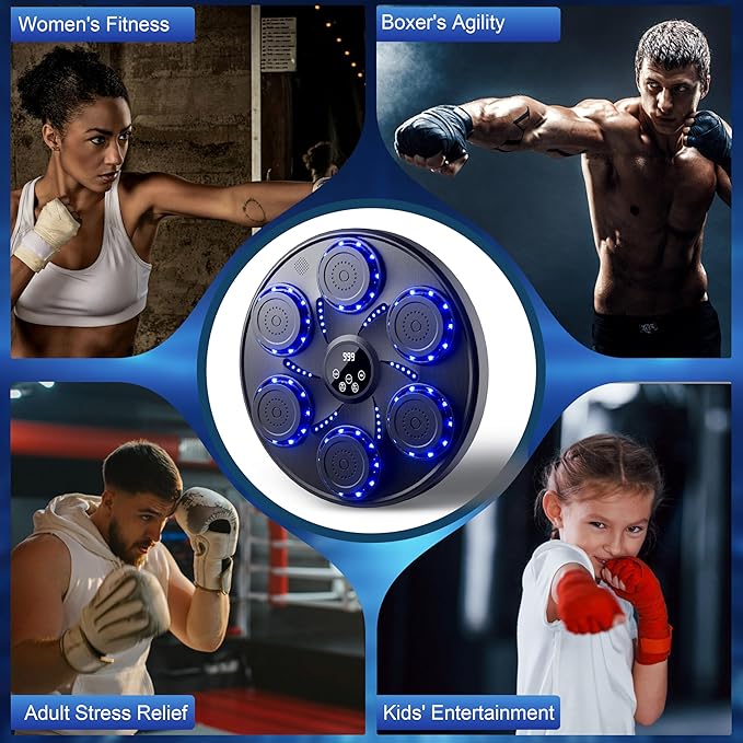 - 【Suitable for All Ages】This boxing music machine caters to users of all ages, making it a perfect fitness addition for the whole family. Its adjustable height settings ensure a comfortable experience for both kids and adults, while the user-friendly design and safe installation options provide peace of mind for parents. Whether you're looking for a fun workout, stress relief, or a way to improve coordination and fitness, this smart boxing trainer offers something for everyone