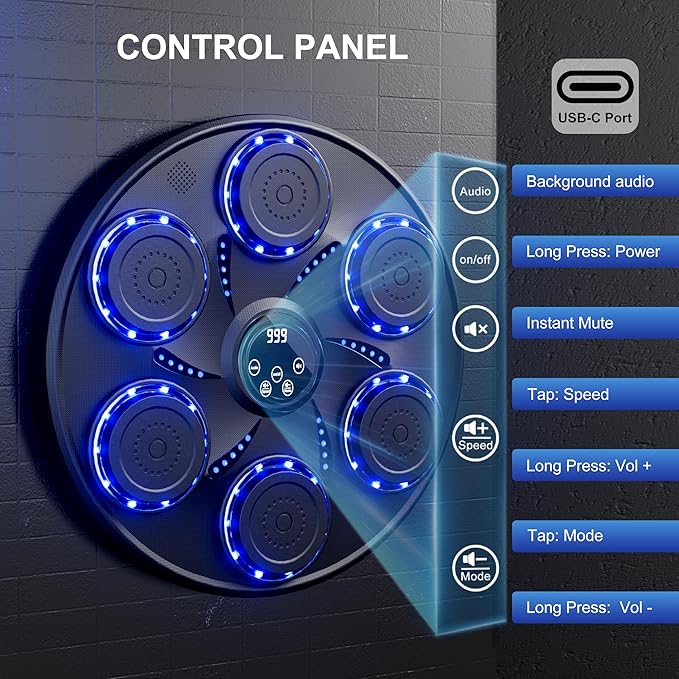- 【9 Modes and Speeds】This boxing music workout machine offers 9 versatile modes and speeds to suit every fitness level from beginners to advanced users. From rhythmic boxing to fast-paced drills, each mode is designed to enhance coordination, endurance, and strength. The adjustable speed feature allows you to control the intensity, making it perfect for users of all skill levels. Enjoy a dynamic and engaging workout experience tailored just for you