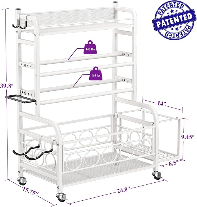 - Large Home Gym Storage Rack: This multi-functional weight rack is equipped with top metal layer for kettlebells, 2-layer dumbbell rack, bottom metal storage basket, a side basket for yoga mat and foam rollers, Several side hooks for fitness bands and rollers. Perfect for organizing your various gym equipment into one storage rack, easy to organize your space and stay organized