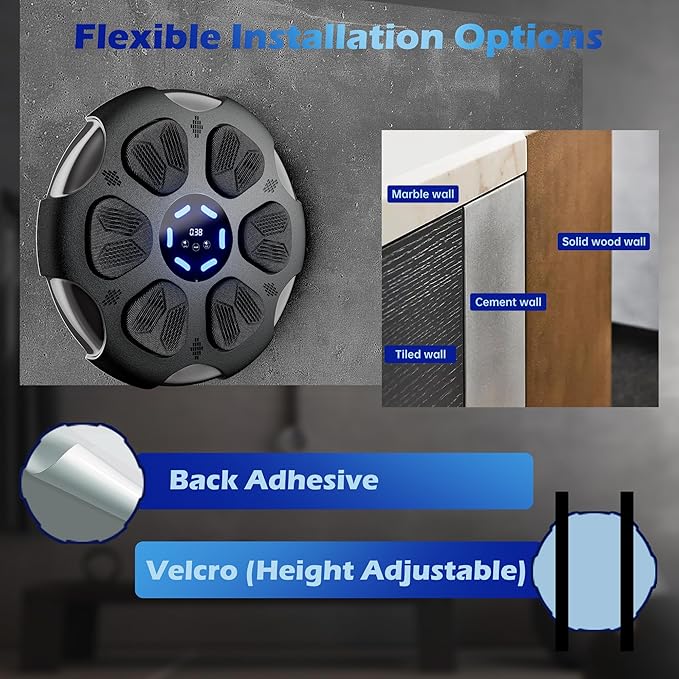 - 【Quick & Easy Installation】Designed for wall-mounted setup, this boxing machine can be securely attached using strong adhesive stickers—no drilling required. It fits various wall types and saves space, while optional brackets provide additional stability for intense workouts