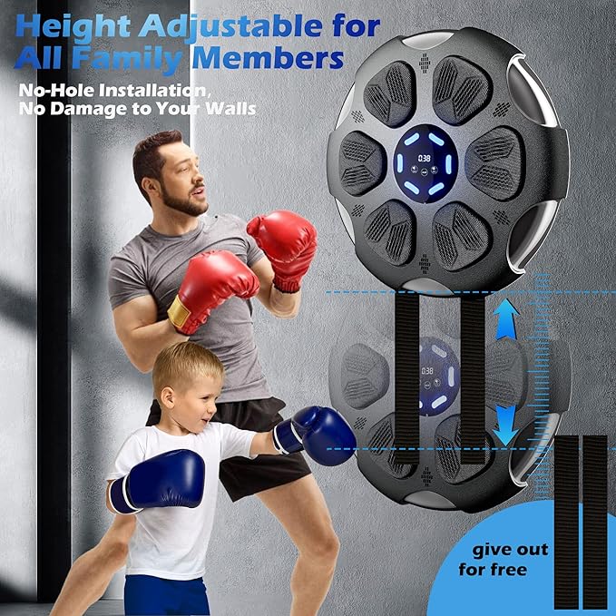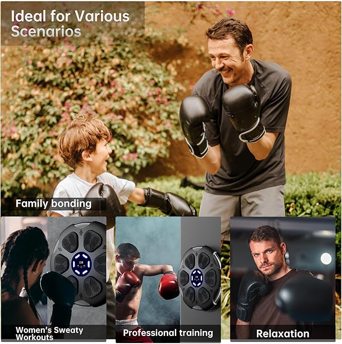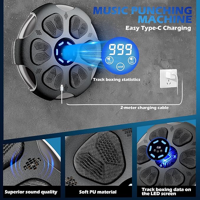 - 【Upgraded Music Boxing Machine】Elevate your boxing workouts with our music boxing trainer, featuring vibrant LED light effects and Bluetooth connectivity. Sync your phone wirelessly to play your favorite tracks, while the stereo surround sound immerses you in rhythm and motivation, making every session fun and energizing