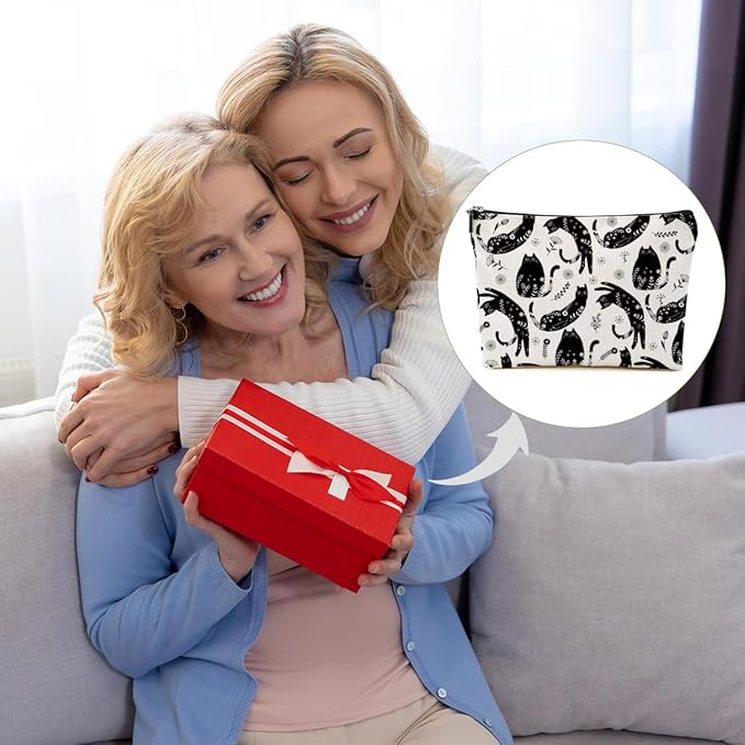 Botanical Cat Makeup Bag Cat Gifts Cosmetic Bag Cat Lover Gifts for Women Girls Friends Wife Cat Themed Gifts Cat Stuff Travel Organizer Zipper Pouch Graduation Birthday Friendship Gifts