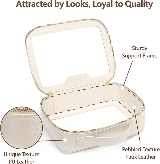 - Unique Pebbled Texture PU Leather: Crafted from premium PU leather, this makeup bag clear combines fashion and function—perfect for keeping your essentials neatly stored at home, in the car, or on the go. Designed for the style-savvy woman, it’s a must-have for travel or daily use