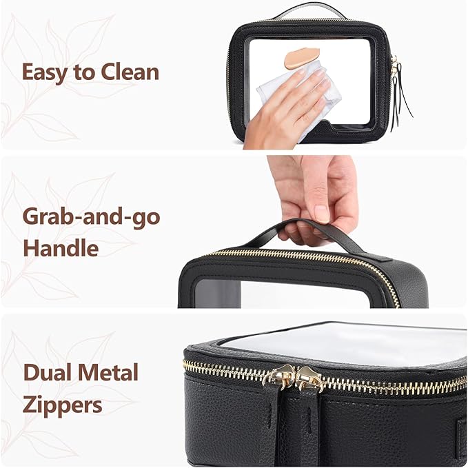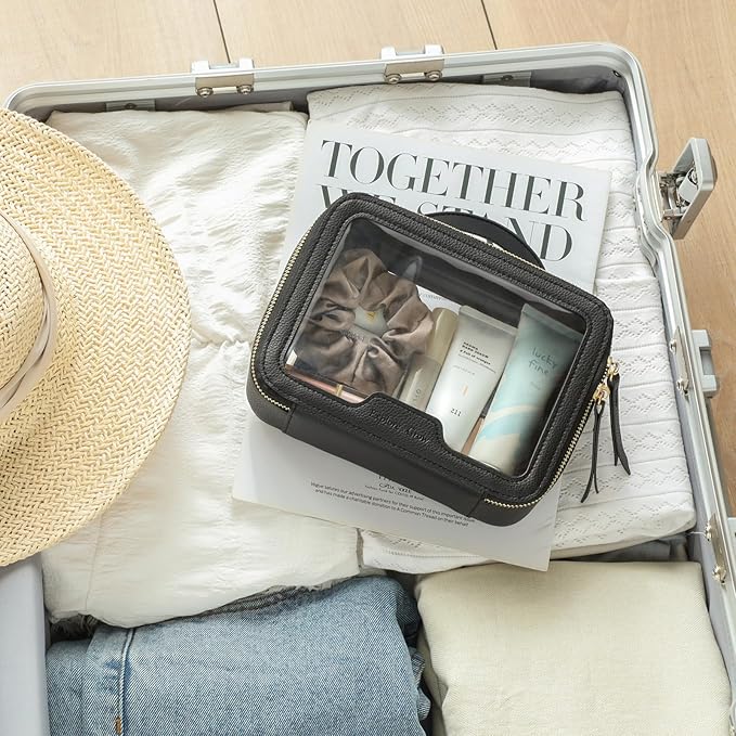 - Premium Quality: This premium-quality clear tsa approved toiletry bag features a 180° wide opening for quick, easy access to all your essentials. The reinforced PU leather and soft transparent plastic make it tear-resistant, splash-proof, and a breeze to clean