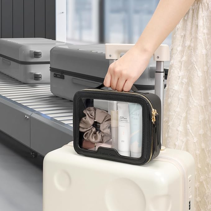 - TSA Approved Hassle, Free Pass: Sized at 7.8 x 2.6 x 5.9 inches, transparent bag complies with US TSA regulations, making airport security screening a breeze. The see-through design allows for instant visibility of your essentials, speeding up the process so you can zip through and saving time