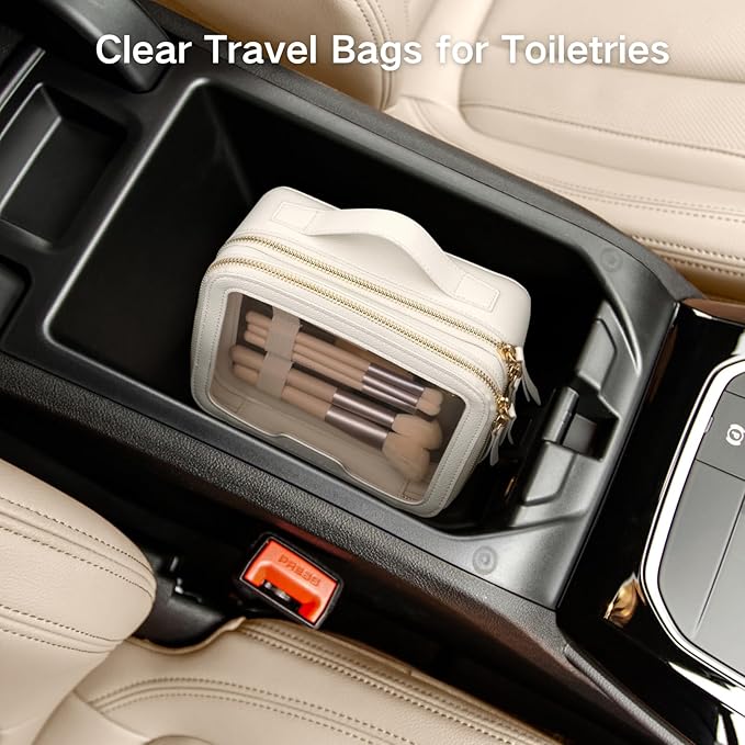 - Perfect for Car Consoles: This car bag organizer easily fits into center consoles, optimizing space usage. This large clear makeup bag can hold your daily essentials, such as foundation, hand cream, lipstick, hair ties, small mirror and comb, etc.