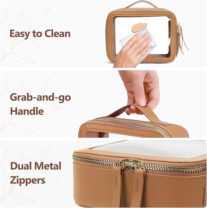 - Premium Quality: This premium-quality clear tsa approved toiletry bag features a 180° wide opening for quick, easy access to all your essentials. The reinforced PU leather and soft transparent plastic make it tear-resistant, splash-proof, and a breeze to clean