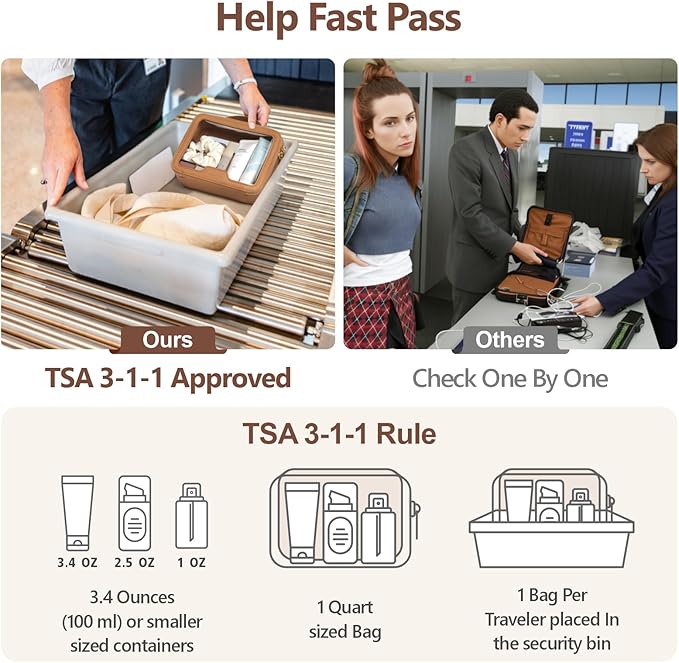 - TSA Approved Hassle, Free Pass: Sized at 7.8 x 2.6 x 5.9 inches, transparent bag complies with US TSA regulations, making airport security screening a breeze. The see-through design allows for instant visibility of your essentials, speeding up the process so you can zip through and saving time