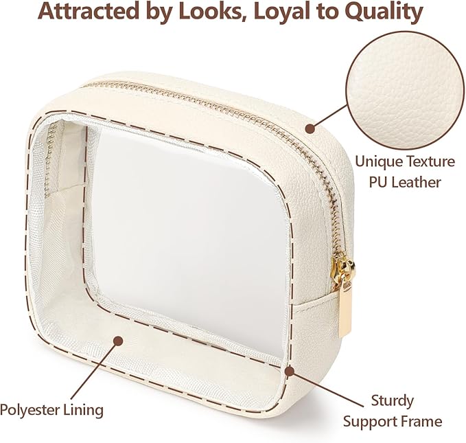 PACKISM Small Clear Makeup Bag - PU Leather Clear Travel Bags for Toiletries Mini Makeup Bag for Purse, Portable Cosmetic Bag Car Bag for Essentials for Women Gift Daily Use (Beige Mini)