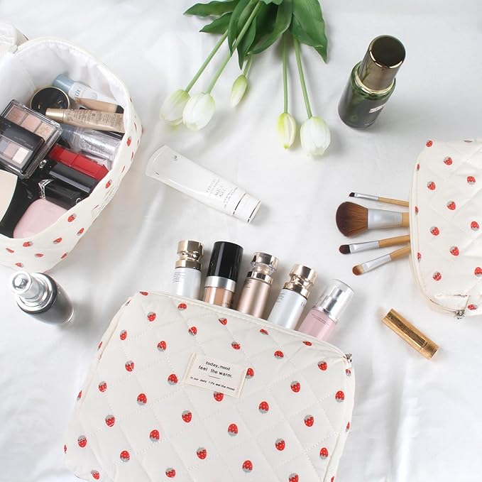 - 【GEOMETRIC AESTHETIC DESIGN】 This quilted bag features a chic, simple, and cute strawberry pattern, comfortable to the touch. Suitable for your everyday makeup routine and special occasions, allowing you to showcase your personal style