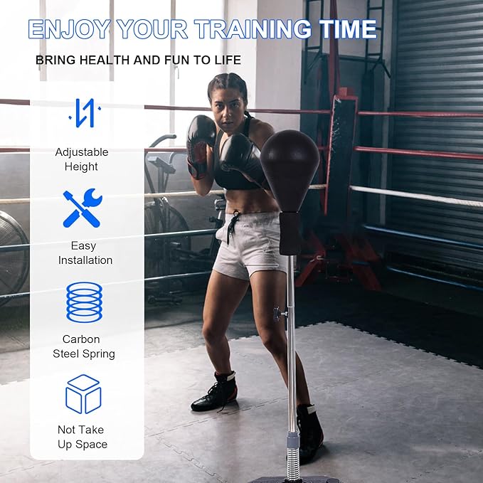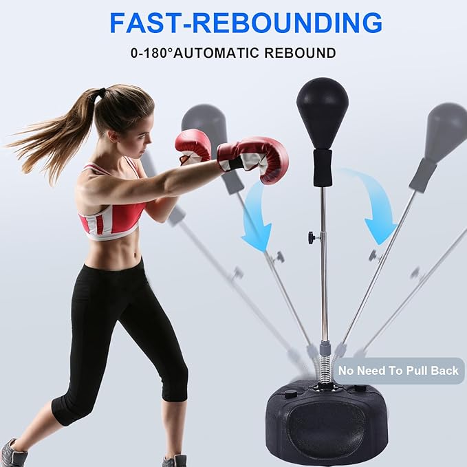 Punching Bag with Stand-Fast Bounceback to Increase Speed, Reflexes, and Stamina – Height Adjustable for Training, Boxing Equipment, Stress Relief & Fitness
