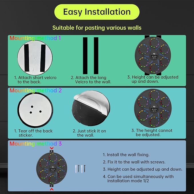 - 【MUSIC+Bluetooth】 Smart music boxing equipment comes with upgraded speakers and surround sound, supports Bluetooth pairing. Cool light effects and special effects sound flashes following the rhythm of your music, making your boxing training more fun and exciting.