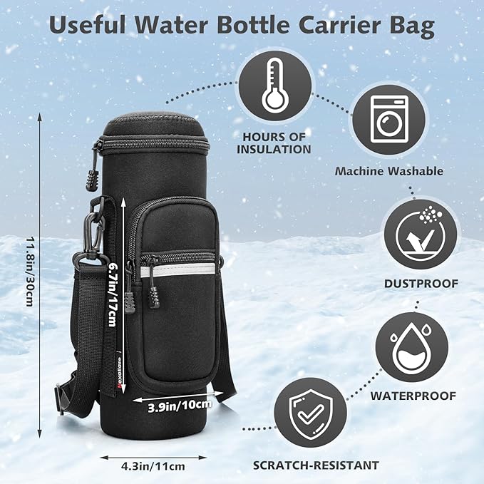 - Insulated Carry Case for On-the-Go: The durable neoprene case keeps drinks hot or cold longer, thanks to its waterproof and shockproof design. With two extra pockets for essentials like your phone and keys, plus a sturdy handle and adjustable strap, it’s perfect for travel, gym, and everyday use.