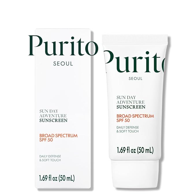 PURITO Sun Day Adventure Korean Sunscreen Smoothest and Lightest Texture Broad Spectrum SPF 50 UVA & UVB Protection No White Cast Oil Free For All Skin Types Vegan Daily Skin Care 50ml, 1.69 fl.oz