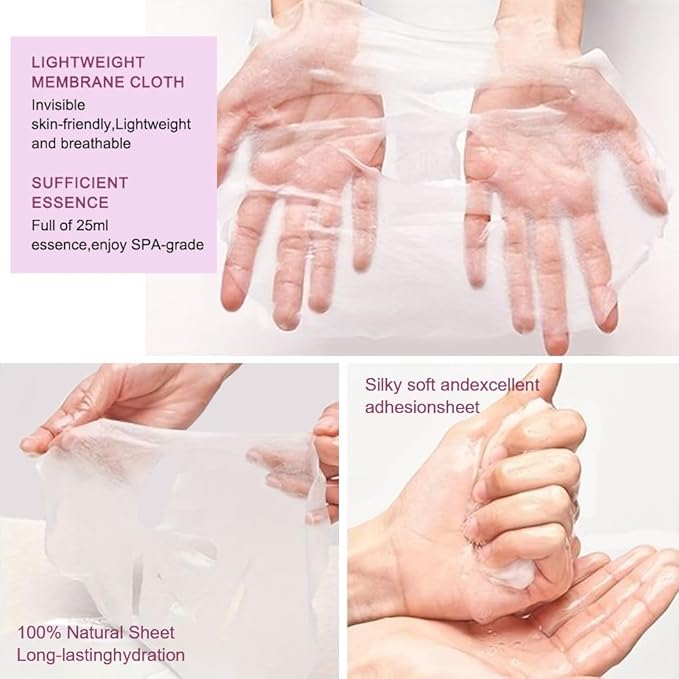 - FACIAL SKINCARE SHEET MASK:This premium women's skin care mask is silky smooth,moisturizing,refreshing and has increased efficacy and adhesion to block evaporation and lock in moisture for a hydrating effect that lasts all day