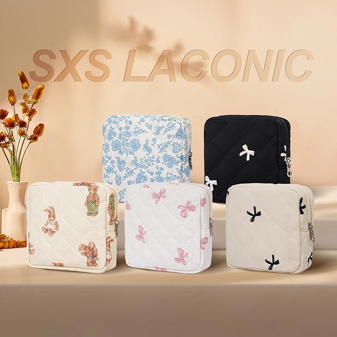 - MULTI-PURPOSE: This is a quilted pouch for daily use, which can not only store your cosmetic products needed for going out, but also cards, keys, coins, watches, tampons, sanitary pads, tampons, and other daily necessities, and the cute cartoon pattern adds a personalized atmosphere