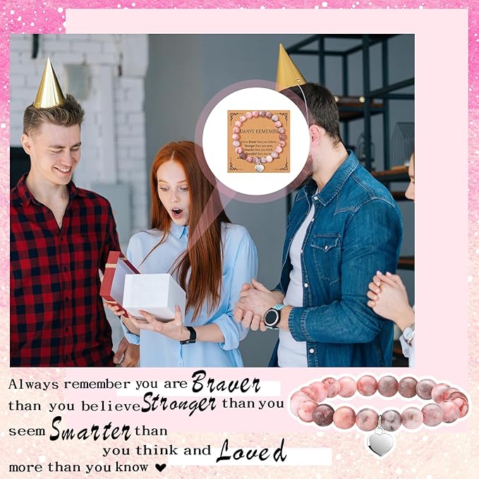 - Quality Material: our inspirational bracelets made from 8 mm pink stones and reliable elastic cord, It's not prone to break, ensuring longevity of use; These inspirational makeup bags for women are mainly made of canvas, with fine workmanship, no peculiar smell, reliable and lasting, not easy to fade, serving you for a long time; They are easy to care for, just wash them by hand and wash the stains with mild soap and water