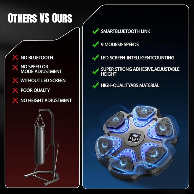 - πππππ πππππππ & πππ ππππππ - The LED display will show the number of puiching, recording your every progress and growth. This boxing machine has a variety of unigue lighting effect modes and speed adjustment functions tocreate a dynamic sports environment for you
