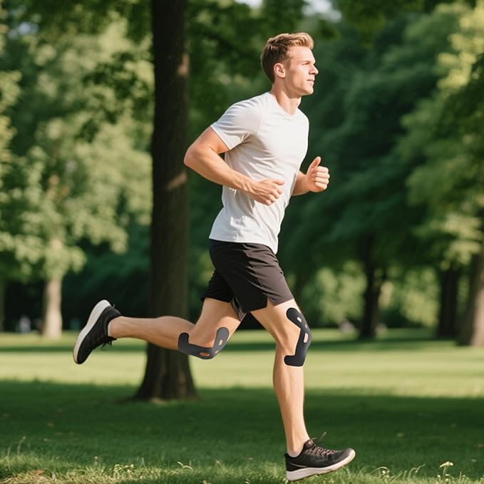 - Easy to use: Knee tape is uniquely pre-cut and customized to the contours of the knee joint. Each piece of kinesiology tape knees is equipped with a partitioned peel-off backing paper for quick and precise attachment, and professional-grade support can be obtained without cutting