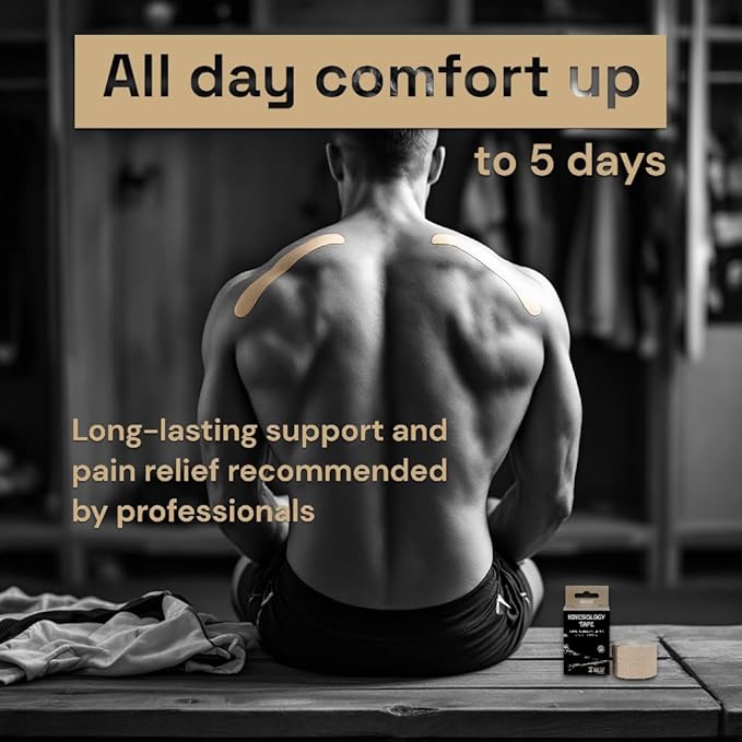 - STRONG ADHESION & LONG-LASTING SUPPORT – Our kinesiology tape stays firmly in place for up to 5 days, even through sweat, showers, and intense workouts. Designed for athletes, trainers, and physical therapy patients who need reliable muscle support.