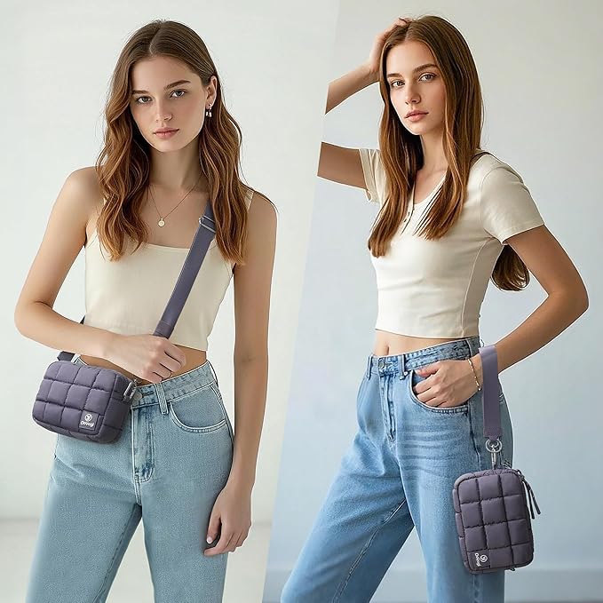 Quilted Cosmetic Bag, Puffer Makeup Bags, Crossbody Purses for women,Cute Travel Toiletry Bag for Women (Purple)