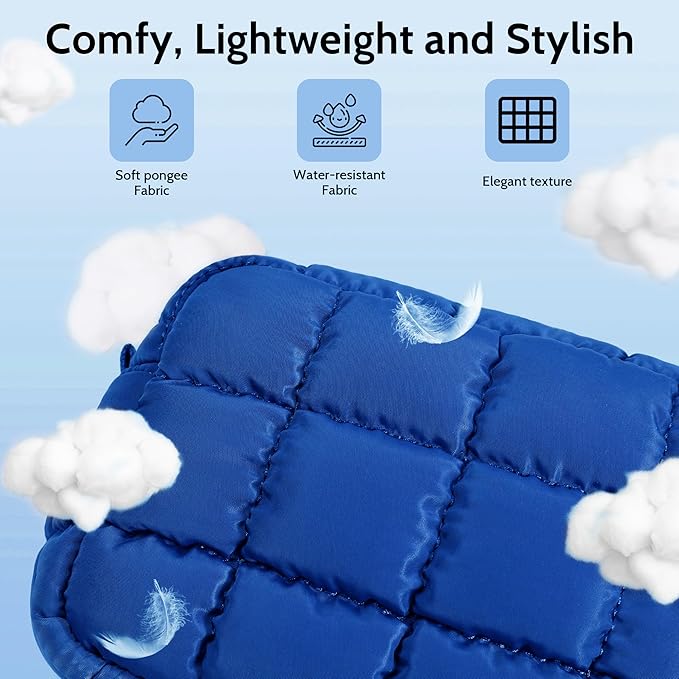 Quilted Cosmetic Bag, Puffer Makeup Bags, Crossbody Purses for women,Cute Travel Toiletry Bag for Women (Blue)
