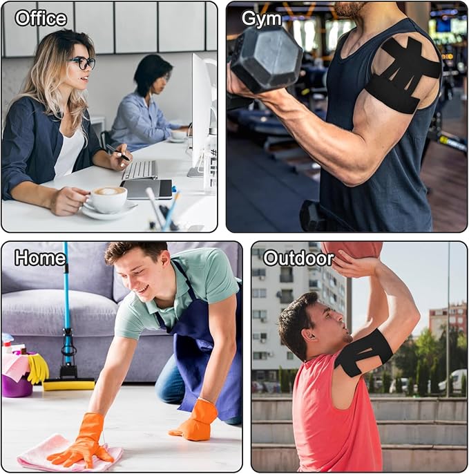 - Unique pre-cut design: Experience the convenience of our pre-cut kinesiology tape for shoulder that are carefully crafted to fit the contours of your shoulders perfectly. Whether you're lifting weights, running or playing sports, this customized shoulder tape ensures optimal support and protection during your workout