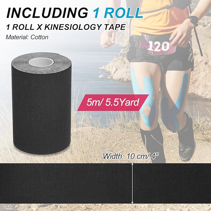 - Length: 5 m / 5.5 Yard; Width: 10 cm / 4 inch; Packing List: 1 Roll x Kinesiology Tape