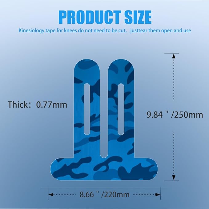 Precut Kinesiology Tape for Knees,24 Pcs – Elastic Knee Support & Stability, Pain Relief – Waterproof, Breathable, Hypoallergenic Athletic Tape (Camo Blue)