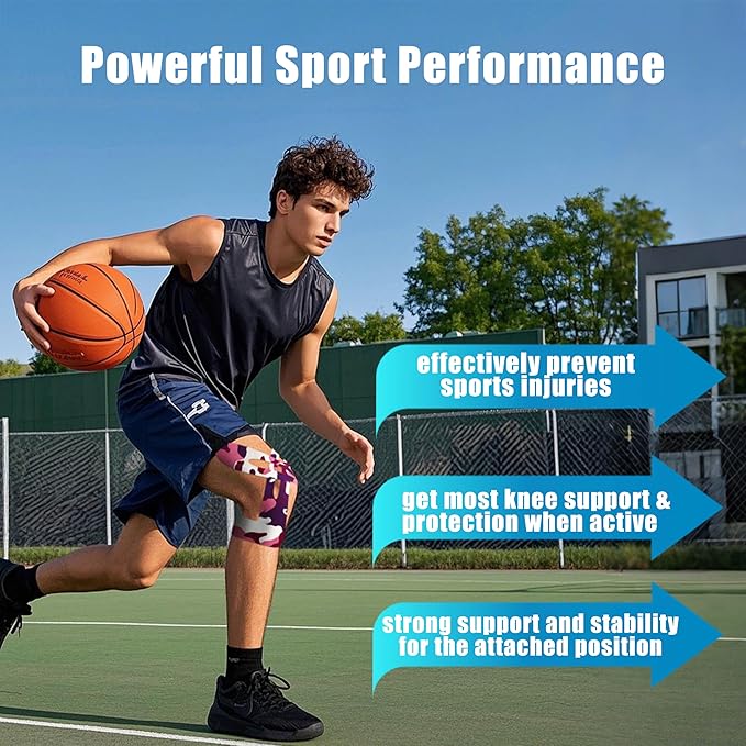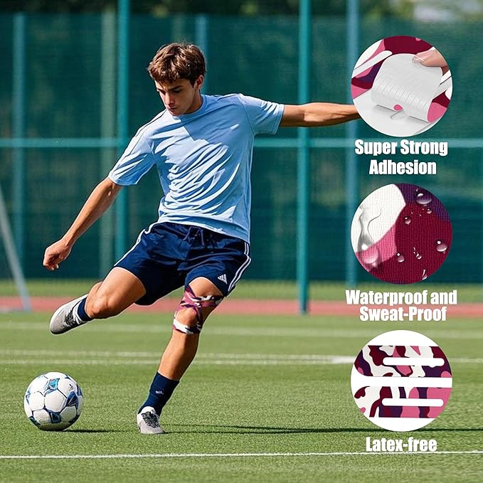 Precut Kinesiology Tape for Knees,24 Pcs – Elastic Knee Support & Stability, Pain Relief – Waterproof, Breathable, Hypoallergenic Athletic Tape (Camo Pink)