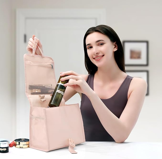 Travel Toiletry Bag for Women Portable Waterproof Cosmetic Makeup Bag Organizer for Container Toiletries (pink)