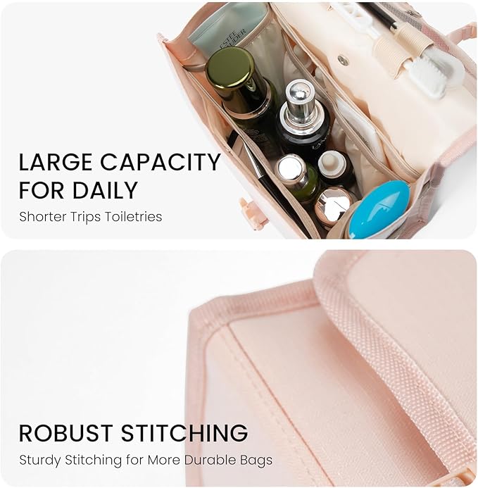 - Organized Interior: Multiple interior pockets lined with recycled polyester keep your toiletries, makeup, and essentials organized and accessible.