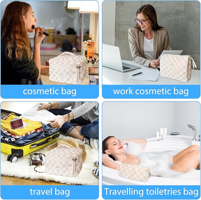 - 【Vintage-Inspired & Built to Last & Checkered Design】Crafted with premium corduroy fabric, this makeup bag combines nostalgic charm with modern durability. The ridged wale texture adds a retro-chic touch to your vanity or travel essentials, while the ultra-soft cotton base gently cushions fragile compacts and lipsticks. Reinforced stitching and abrasion-resistant ridges ensure it survives daily hustle, backpack tosses, or suitcase adventures — no more flimsy plastic or scratch-prone nylon. Warm to touch, easy to clean, and effortlessly stylish.