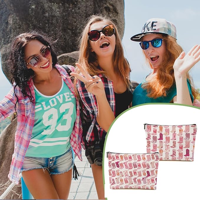 2pcs Western Makeup Bag Western Gifts for Women Cosmetic Bag Cowgirl Gifts for Women, Girls Sister, Pink Boots Cowboy Boots Gift Christmas Birthday Gift, Cowgirl Stuff
