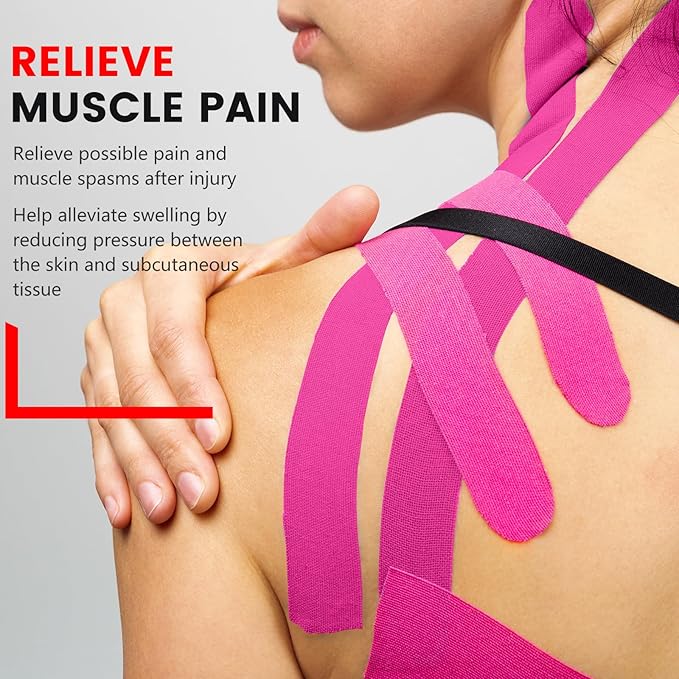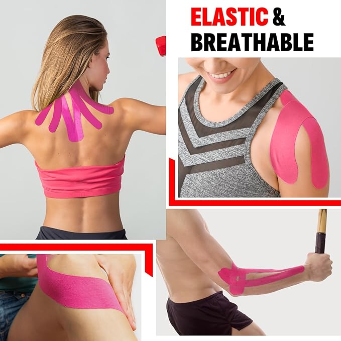- 【Skin friendly】Our athletic tapes are latex-free formula minimizes discomfort for sensitive skin. You can use these muscle tapes on your neck, shoulders, waist, legs, and ankles to support muscle movement during activity