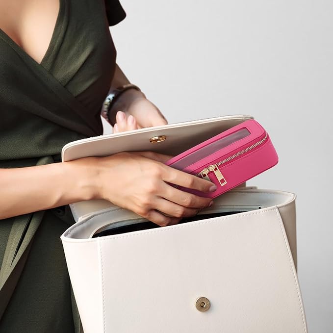 Makeup Brush Case Clear Travel Cosmetic & Toiletry Bag Small Makeup Bag with Zipper Purse Organizer Car Essential Bag for Women (X/Fuxia, SLIM)