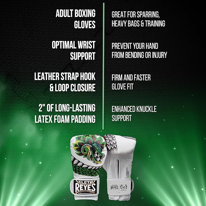 - ANATOMICALLY DESIGNED: CLETO REYES heavy-duty boxing gloves are handcrafted in Mexico from COW LEATHER; anatomically designed with a water resistant lining to prevent moisture entering the padding and keep the glove weight constant