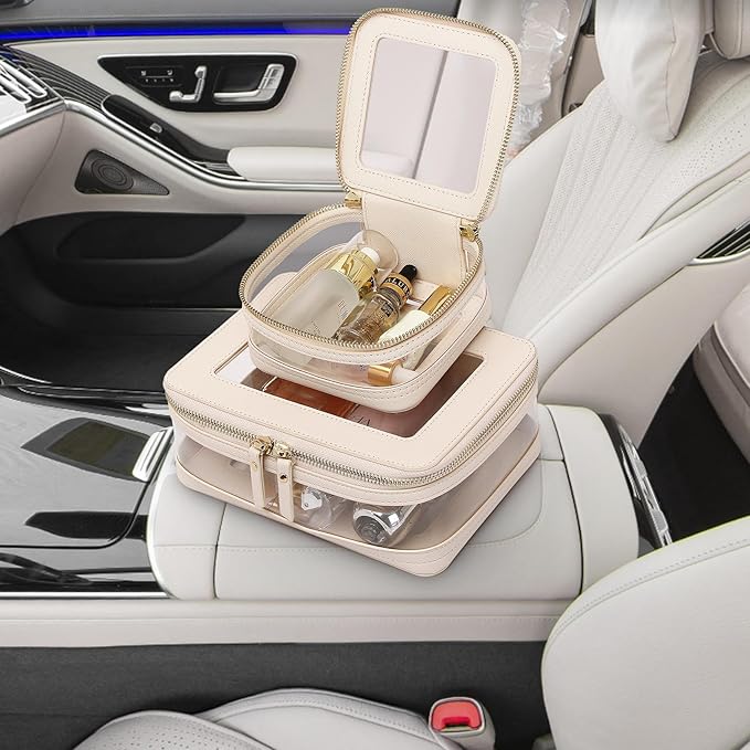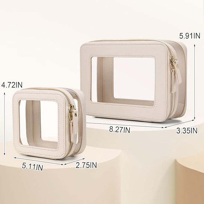 Clear Makeup Bag with Zipper Waterproof Travel Makeup Set for Cosmetics and Toiletries Women's Purse Organizer and Car Essentials (Beige, M+MINI)