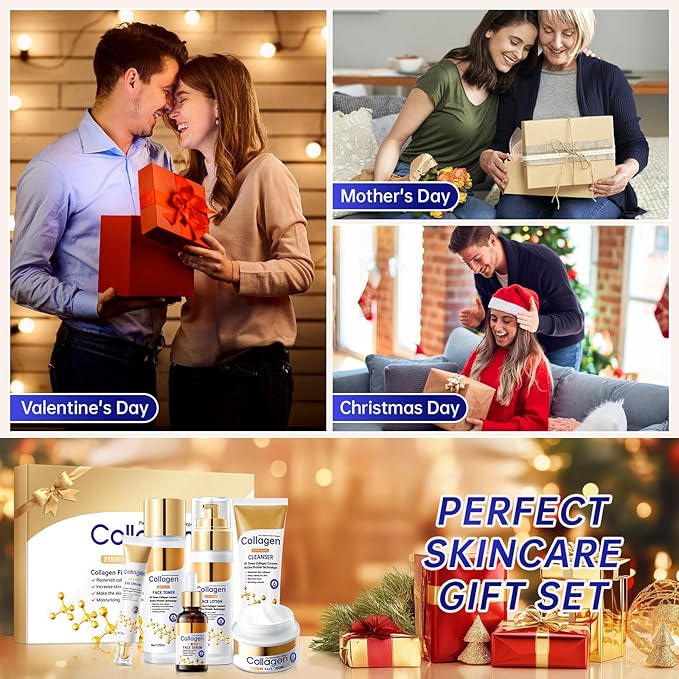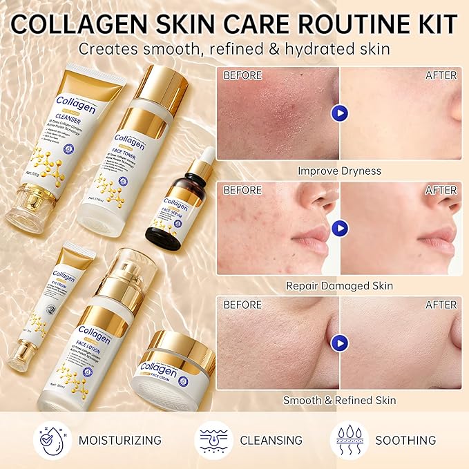 - Collagen Skin Care Set: Our skincare set enriched with collagen ingredients, which moisturize your skin, replenish your skin with collagen and water. It also restores the elasticity and vitality of the skin, making it more hydrated and smooth