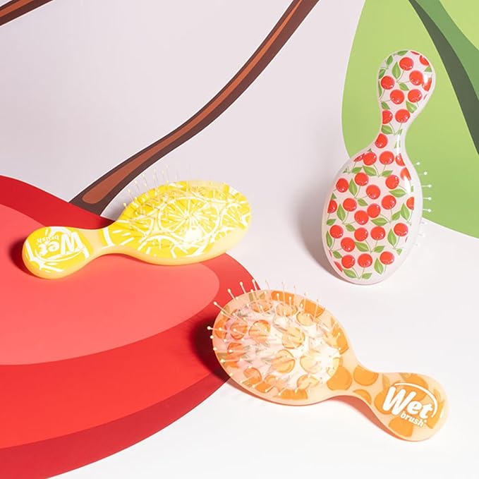 Wet Brush Mini Detangler Hair Brush, Cherry (Tutti Fruitti), Detangling Travel Hairbrush, Ultra-Soft IntelliFlex Bristles Glide Through Tangles with Ease, Pain-Free, All Hair Types, Limtied Edition
