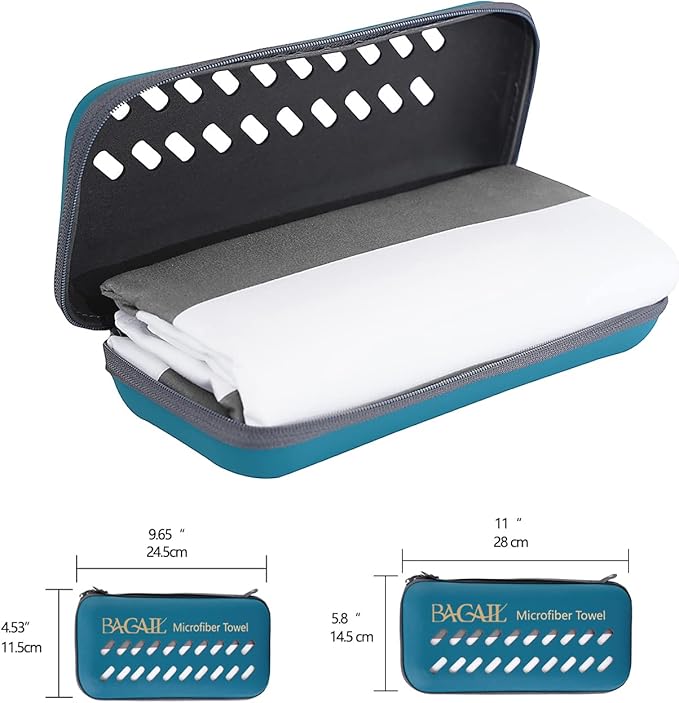 - Portable Travel Towel Case: BAGAIL microfiber towel comes with a soft, zippered EVA case that not only protects the towel, but also makes it easy to pack and carry with you on the go