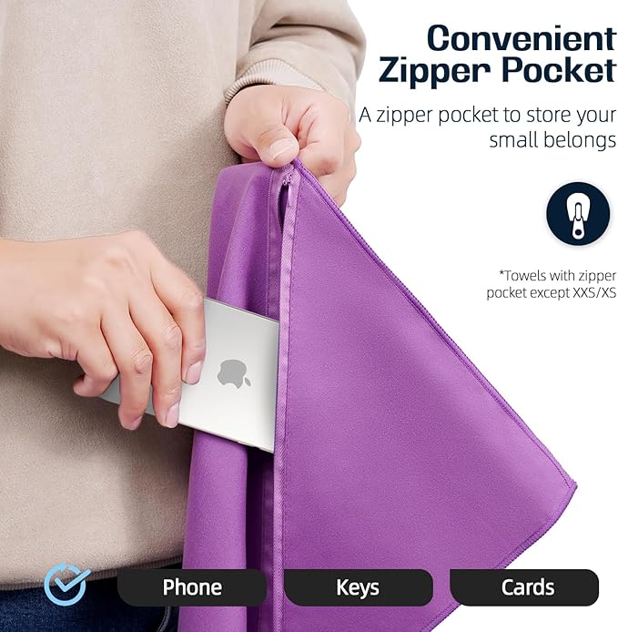 • Portable Travel Towel Case: BAGAIL microfiber towel comes with a soft, zippered EVA case that not only protects the towel, but also makes it easy to pack and carry with you on the go