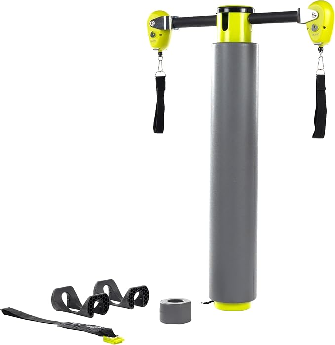 - COMPLETE GYM SET FOR HOME & MORE: The MOTR has a sturdy padded roller-tube base that holds 2 arms with 2 variable resistance modules. This studio and home-gym system features 2 stability wedges, a self-locking lid, pull straps, and 2 universal handle straps.