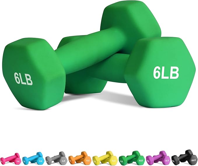 - PACKAGE INCLUDES: This weight set includes two 6 lb neoprene dumbbells (12 pounds total), making them perfect for yoga exercises and other on-the-go workouts.