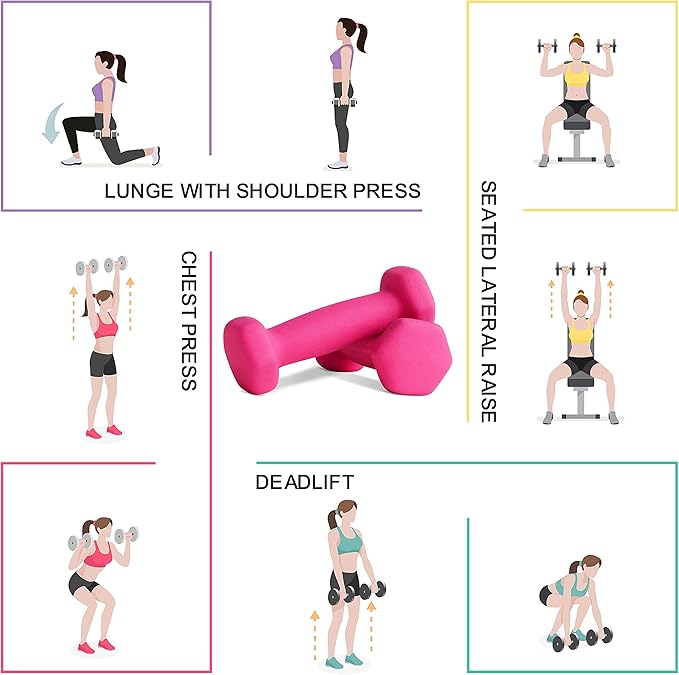• NON-SLIP COMFORT GRIP: Featuring a soft neoprene coating, these dumbbells offer a comfortable and ergonomic grip that absorbs moisture, making them ideal for a wide range of indoor and outdoor exercises.
