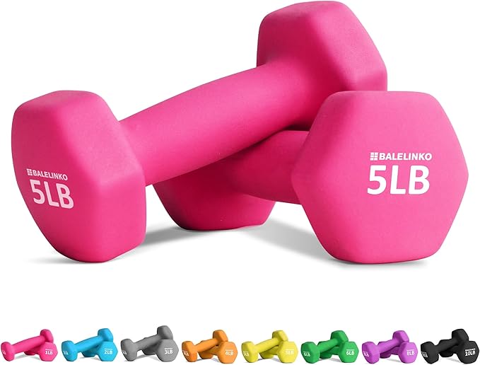 • STYLISH AND MODERN: Balelinko neoprene coated dumbbell weights are sold in pairs and available in 1, 2, 3, 4, 5, 6, 8, 10, 12, 15pounds, which allow you vary the intensity of your workouts. Bright colors and large, clear numbers make these quick and easy to grab while in the zone.