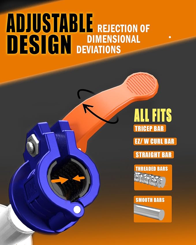 - KEEP THE WEIGHT: Bar clips piston handle, refuse to be too loose or too tight, turn the handle to adjust the size, suitable for 1inch (23mm, 24mm, 25mm), 27mm, 28mm or 30mm Threaded&straight barbell bar. Equipped with TPR inserts, anti-slip texture inside, double protection bursts out a strong grip, load-bearing 400lb+, non-slip, safety lock weight.