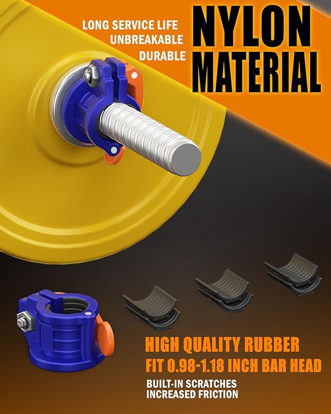 - HIGH-END QUALITY: heavy-duty hard nylon + TPR soft rubber, the complementary combination of soft and hard, lifting clips for bars the nylon outer body is as hard as stone, resistant to falling, wear-resistant, the special rapid rebound of TPR soft rubber can withstand strong pressure and is not easy to deform,Commercial-grade quality to ensure your sports safety