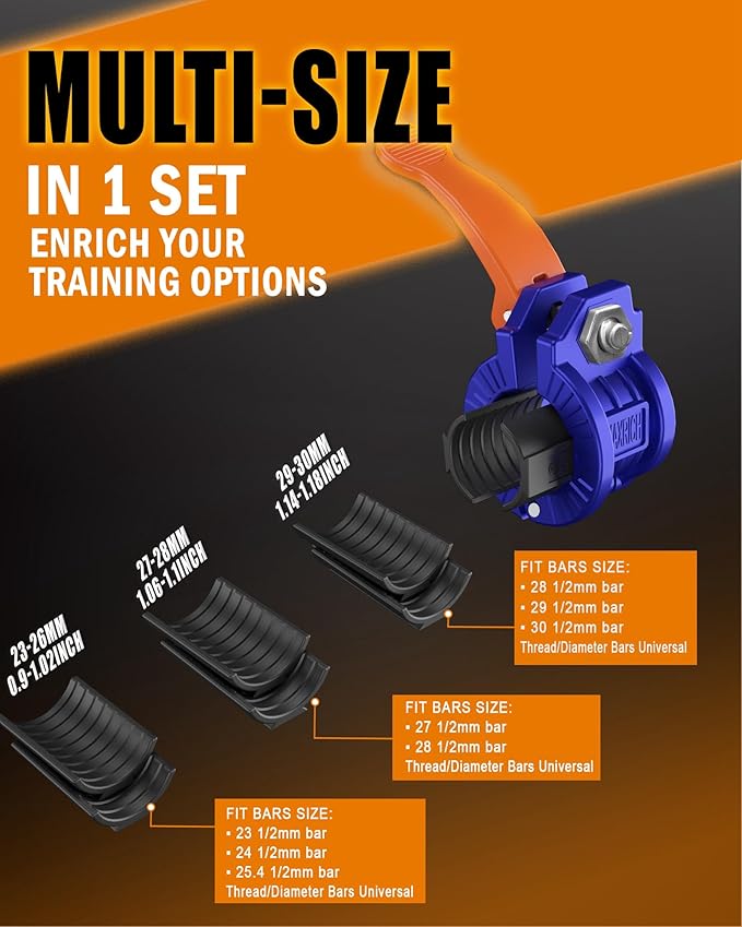 - UNIQUE CONFIGURATION: Say goodbye to a single size, the innovative design of MAXRICH barbell clamps is equipped with multi-size inserts, which can be easily installed or removed, and only 1 barbell clamp can be used for all sizes of barbell bars within 23-30mm. No more worrying about size
