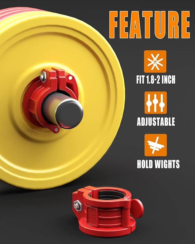 - KEEP THE WEIGHT: Bar clips piston handle, refuse to be too loose or too tight, turn the handle to adjust the size, suitable for 1inch (23mm, 24mm, 25mm), 27mm, 28mm or 30mm Threaded&straight barbell bar. Equipped with TPR inserts, anti-slip texture inside, double protection bursts out a strong grip, load-bearing 400lb+, non-slip, safety lock weight.
